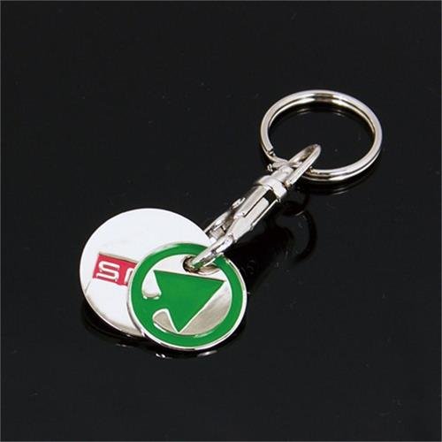 - 1, Custom supermarket metal trolley coin keychain with enamel logo